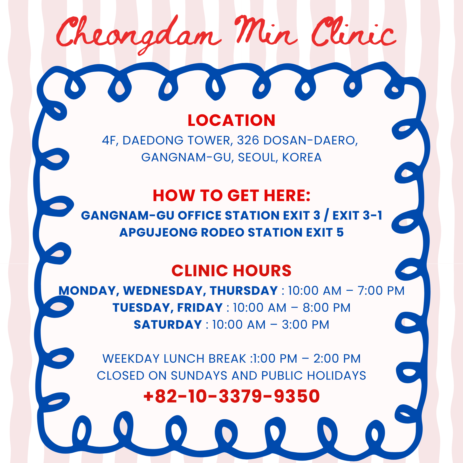 At Min Dermatology Clinic, we believe healthy, radiant skin starts with expert care. Located in the heart of Gangnam, Seoul, our clinic specializes in advanced dermatological treatments that are personalized to your skin’s unique needs. From acne and pigmentation to anti-aging and rejuvenation, we offer science-backed solutions delivered by experienced professionals.