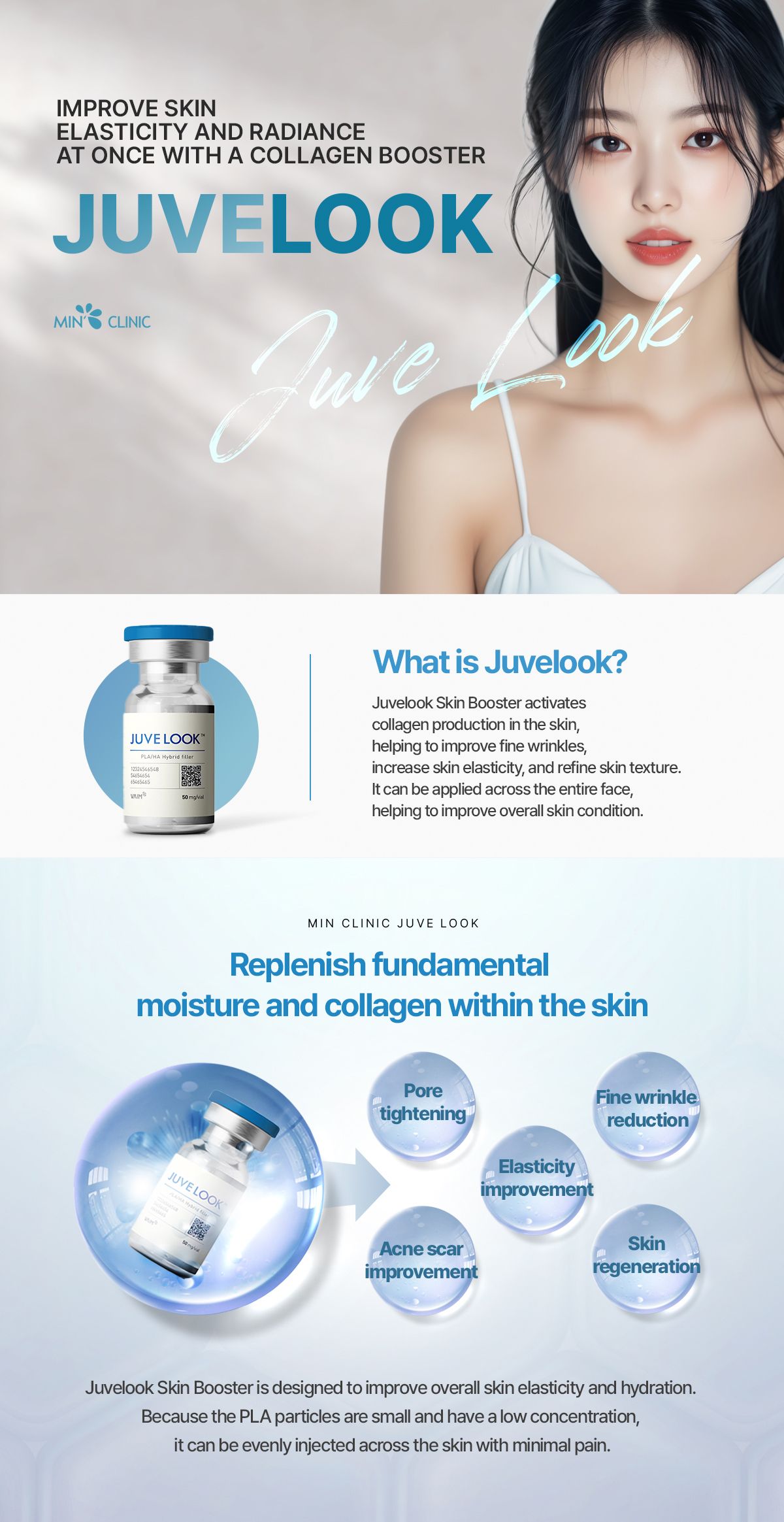 Juvelook is an innovative Korean skin booster that combines polynucleotides (PN) with hyaluronic acid to enhance hydration, elasticity, and skin tone. It is especially effective for treating acne scars, large pores, and early signs of aging. Juvelook not only boosts collagen but also improves skin’s internal structure, offering long-term skin renewal with minimal downtime and natural results.
